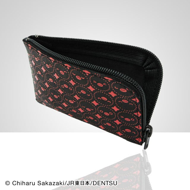 Suicaのペンギン印傳小銭入(十色柄・黒革×赤漆)