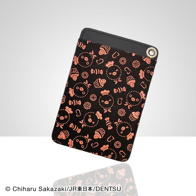 Suicaのペンギン印傳パスケース(スイーツ柄・黒革×ピンク漆)